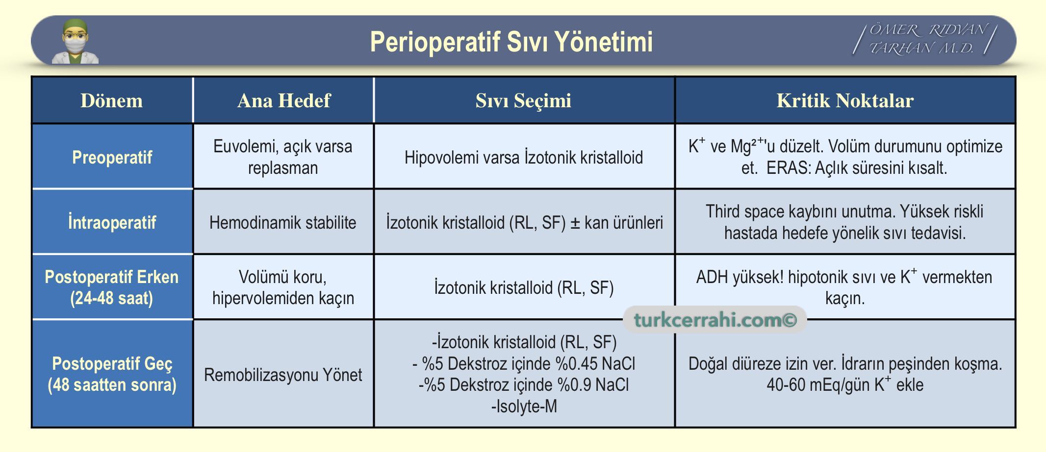 - İntraoperatif Dönem (Ameliyat): Ameliyat sırasındaki kan kaybı, üçüncü boşluk kayıpları ve buharlaşma yoluyla kaybedilen sıvıların dinamik olarak yönetilmesi gerekir.